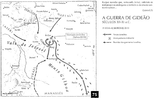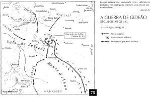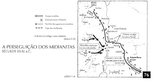 Mapas das batalhas contra os midianitas, sob a liderança de Gideão.