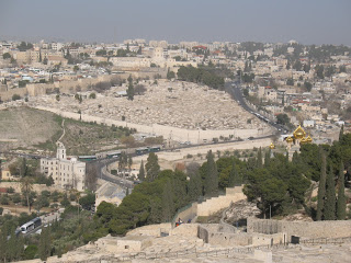 Cemitério islâmico – Porta leste Templo Jerusalém. Fonte : https://reavivadosporsuapalavra.org/wp-content/uploads/2021/02/71108-img_5974.jpg [Foto com continuação da foto, à esquerda, mostrando o restante do monte Moriá (do templo), o Domo da Rocha (islâmico) e as construções atrás das quais está o Muro das Lamentações (única parte que ainda resta do segundo templo, em: https://reavivadosporsuapalavra.org/wp-content/uploads/2021/02/eb5fd-img_5971.jpg.]
